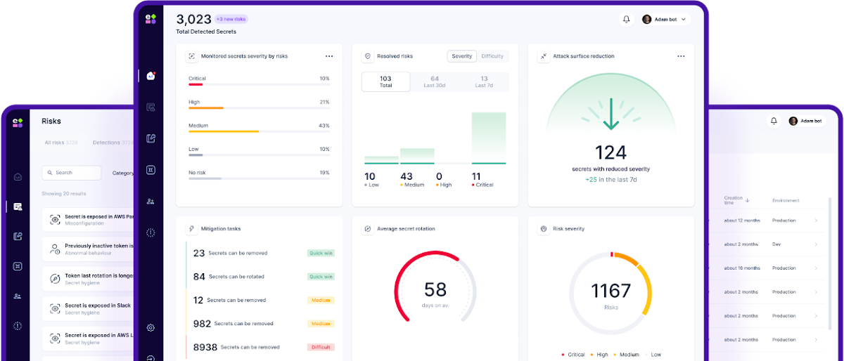 To manage non-human identities and secrets at scale you need a bird’s-eye view of all machine identities in your systems. From ownership details to permissions and risk levels, all this critical information needs to be centralized, empowering your security teams to understand the secrets landscape thoroughly. No more guessing games—just clear insights into non-human identities and their potential vulnerabilities.