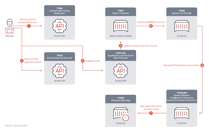 Bad actors have been observed targeting Docker remote API servers to deploy the SRBMiner crypto miner on compromised instances, according to new findings from Trend Micro.