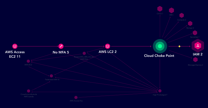 | Example of Cloud Choke Point showing inbound and outbound attack paths |