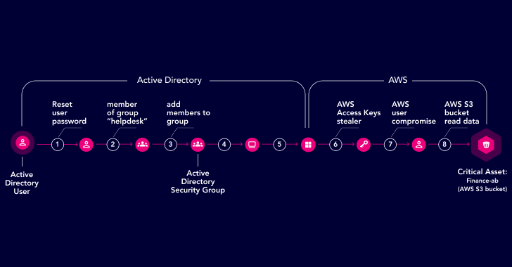 | Example hybrid attack path across MS Active Directory and AWS |