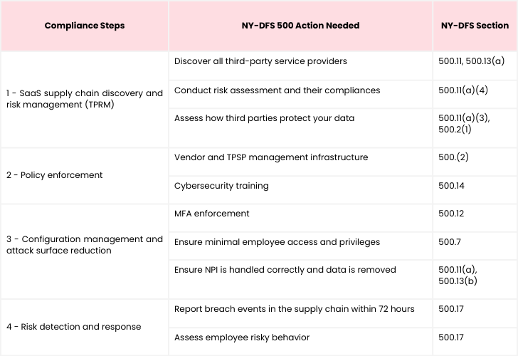 | *Mapping of NY-DFS Requirements to Four SaaS Security Steps |