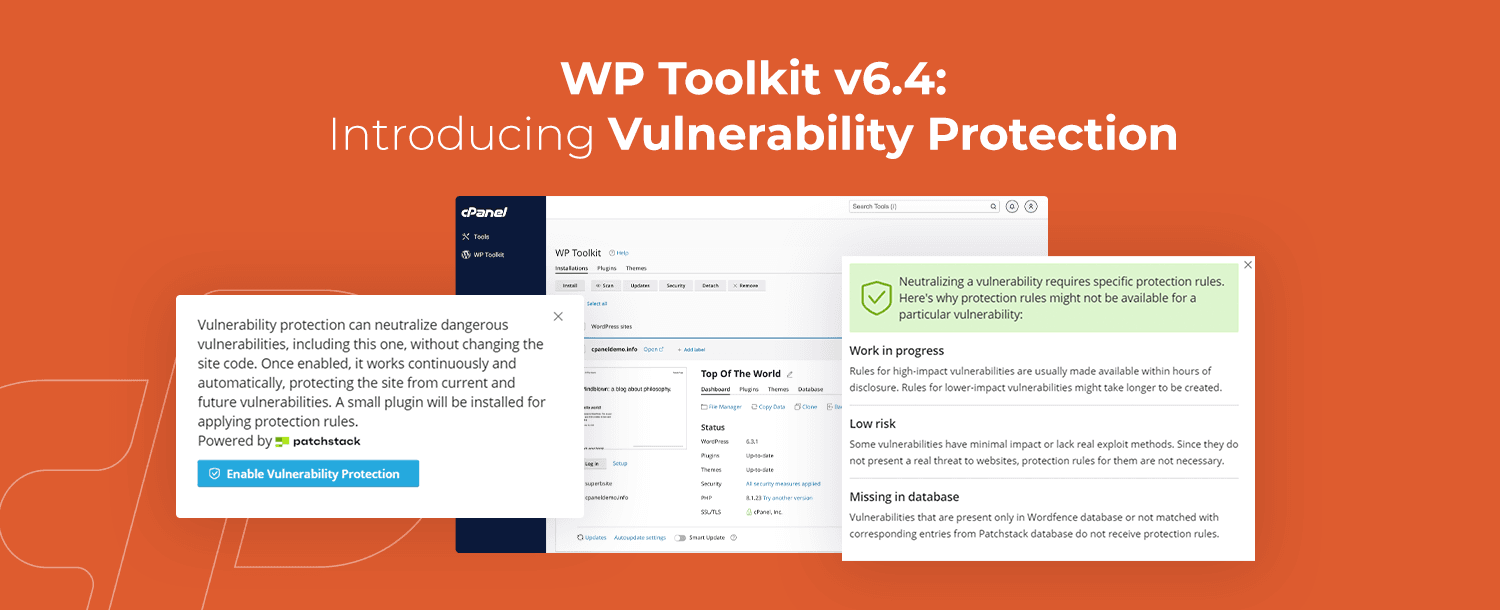 7 Min de Lectura LineasDNSel12/06/2024Introducción de WP Toolkit V6.4: Protección de vulnerabilidad con PatchStack. Como se prometió en el anuncio V6.3, WP Toolkit ha vuelto nuevamente con otro lanzamiento importante. ¡Con V6.4 te presentamos, protección de…